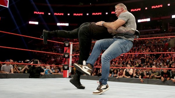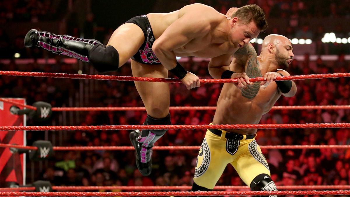 Tenemos a dos talentosos como son Cesaro y Ricochet, al costado 3 luchadores con técnica pésima, lastima que el primer eliminado seria Cesaro. Después vendría Lashley por parte de Strowman. Luego seguiría la eliminación del monstruo entre hombres. Eso estaba bien reservado en términos de una forma de deshacerse de Strowman. No estoy seguro de si se anunció originalmente como una lucha de eliminación, pero esa fue una forma creativa de deshacerse de Strowman. Puede pelear con Lashley de nuevo o con Cesaro como un nuevo rival. No es que Ricochet fuera un luchador para sujetar a Strowman. Simplemente se aprovechó de la situación. Ese fue una buena lucha dividida en dos partes con los cinco muchachos que lo iniciaron y luego la parte Miz / Ricochet también fue muy entretenida. Me gustó la historia que contaron con Miz trabajando sobre la rodilla, Ricochet está de regreso y tener a Ricochet ganando con el 630 Splash para dos pinfalls es una excelente manera de poner esa jugada como una gran jugada final. Quería que ganara Ricochet, así que me alegro de que lo hiciera. Con eso dicho, esta versión de Miz realmente no le ha ido bien después de poner a Shane McMahon dos veces y no tener una pelea desde entonces. Después de la lucha, Joe intentó atacar a Ricochet, pero Ricochet lo envió fuera del ring. Ricochet golpeó un sacacorchos que se zambulló sobre Joe en el suelo.