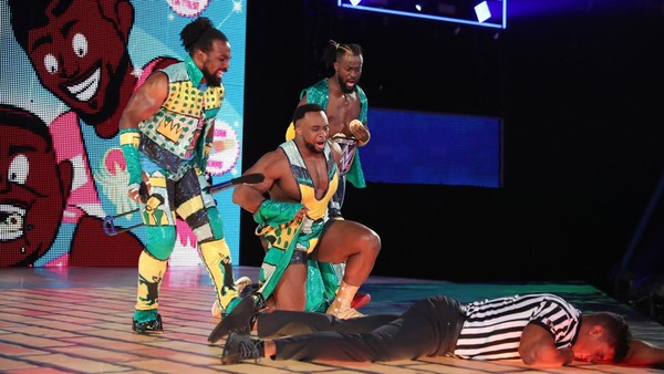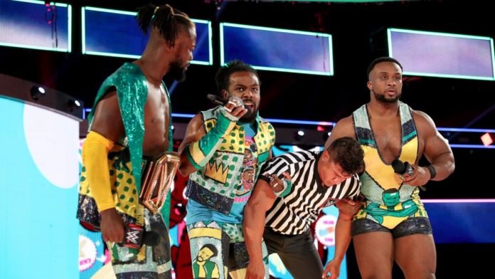 Corbin sugirió que los tres en el ring le den una paliza a New Day. Woods dijo que es un desafío, pero solo si tenían un oficial de la WWE para sancionar este partido. Big E preguntó por un árbitro y señalaron que EC3 aún no se encontraba en el escenario. Los aficionados cantaron «EC3» y lo hicieron asentir con la cabeza. Pusieron un micrófono en la boca de EC3 y Kingston dijo, con voz quejumbrosa, que el partido del equipo de seis hombres será en este momento.